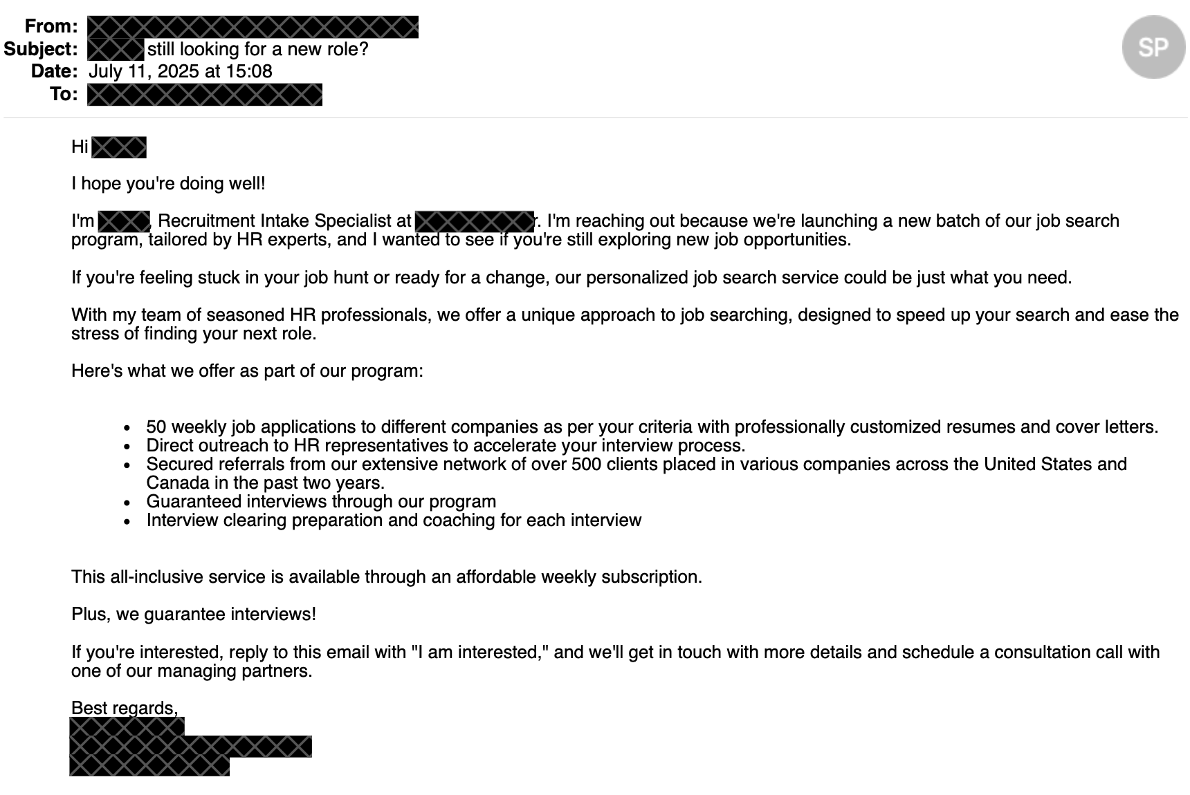 I’m curious about this phone interview on Monday. Based on the initial contact email I think this “recruiting” firm is really trying to sell me something and it’s not a job, it’s training to enter the IT field.